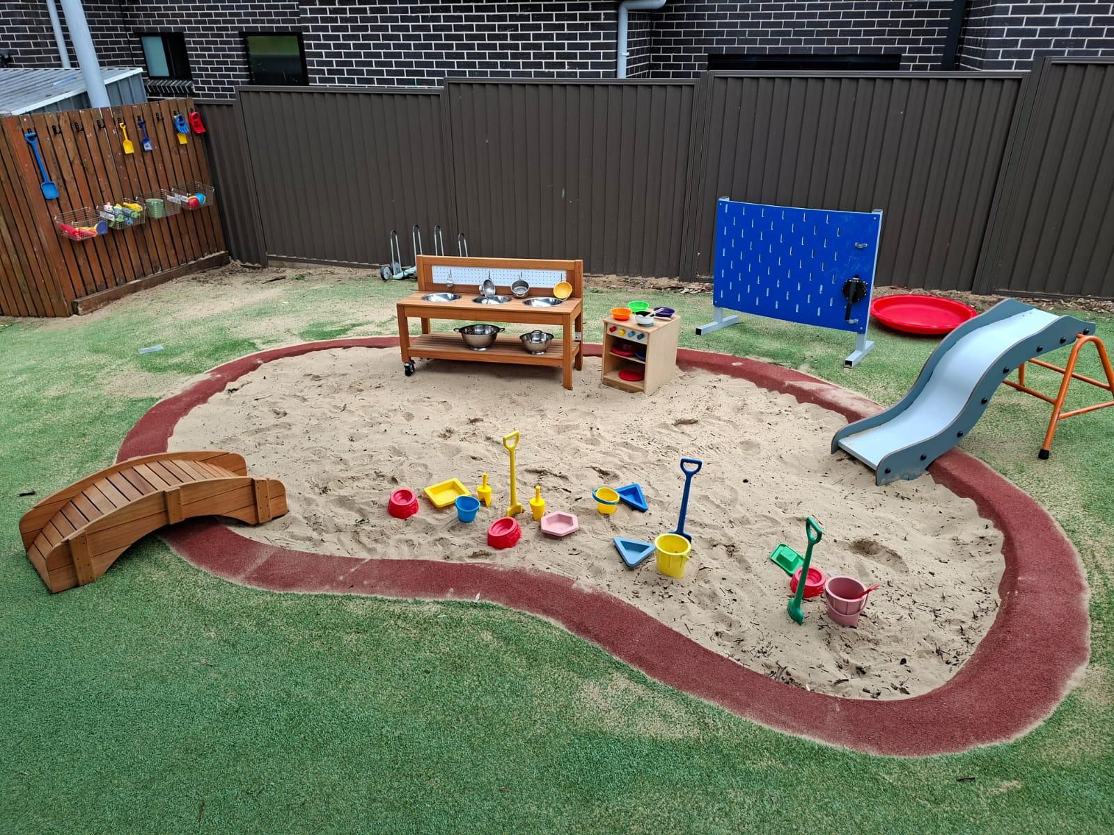 Our purpose-built childcare and preschool centre in Merrylands offers innovative early learning programs in a safe, nurturing environment. Our outdoor environment offers ample shade to protect children from the harsh sun and allows for uninterrupted outdoor activities during rain or hot days. We have a herb garden, a huge sandpit area for sensory play, spaces for construction, interest tables, quiet corners, as well as creative and dramatic play. Our large indoor space has age-appropriate resources that encourage exploration and engagement. Our long-standing team of educators and teachers strives to create a calm, comfortable environment where each child feels safe. Our Bachelor-qualified Early Childhood Teacher delivers a Government-approved Preschool program that prepares children for school. Our preschool sports program introduces children to the fundamentals of various sports, promoting physical development, teamwork, and fun in a safe and engaging environment. Preschool children also enjoy Arabic classes through our ELLA language program. We regularly host community visits, such as firefighters and dental and eye check-ups, to provide children with engaging learning experiences.